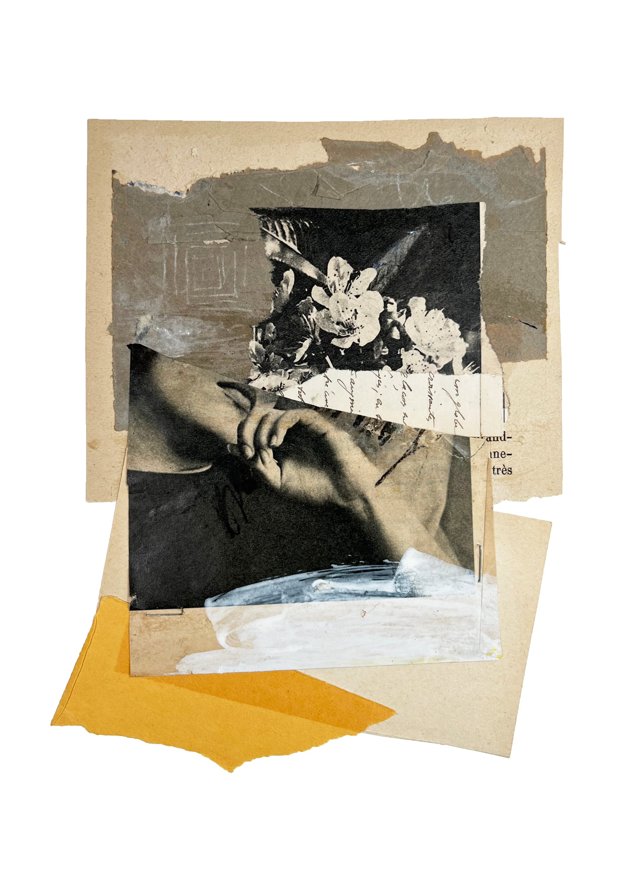ORIGINAL collage, old papers and magazines, acrylic, 29,7x 21cm Handmade and signed by artist Laurence Briat.